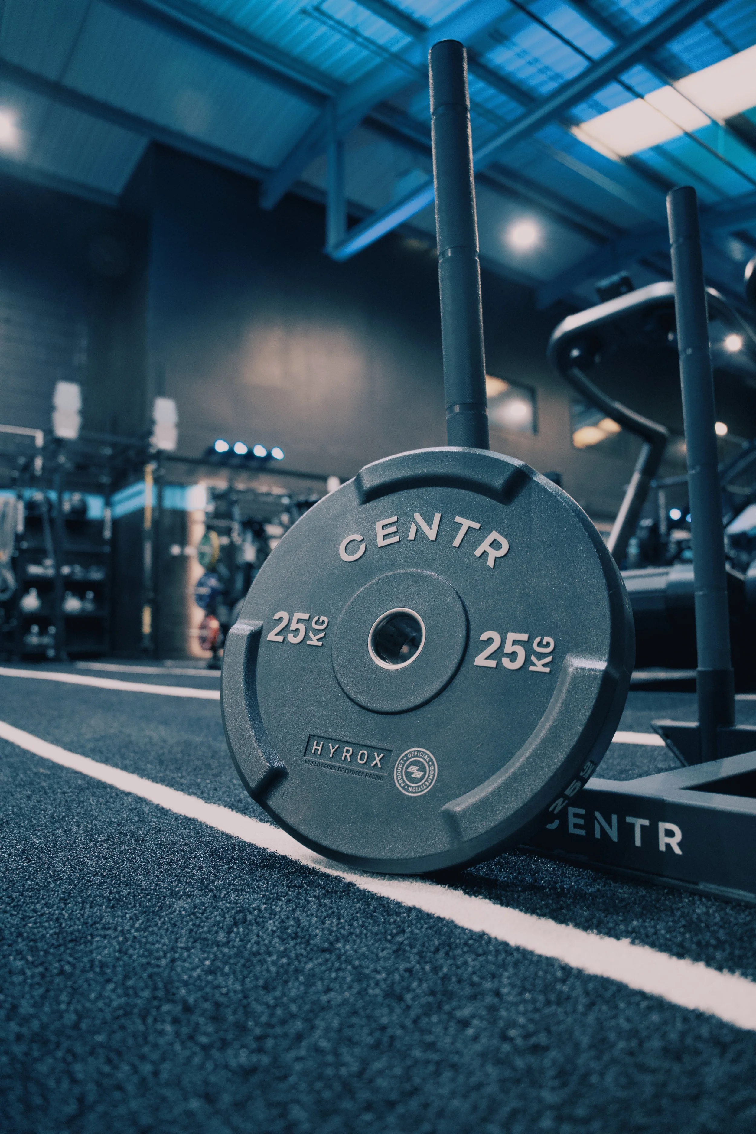 Inside a boxing gym with two young boys practicing boxing with gloves and punching bags in the background, and a mural of fighters on the wall.